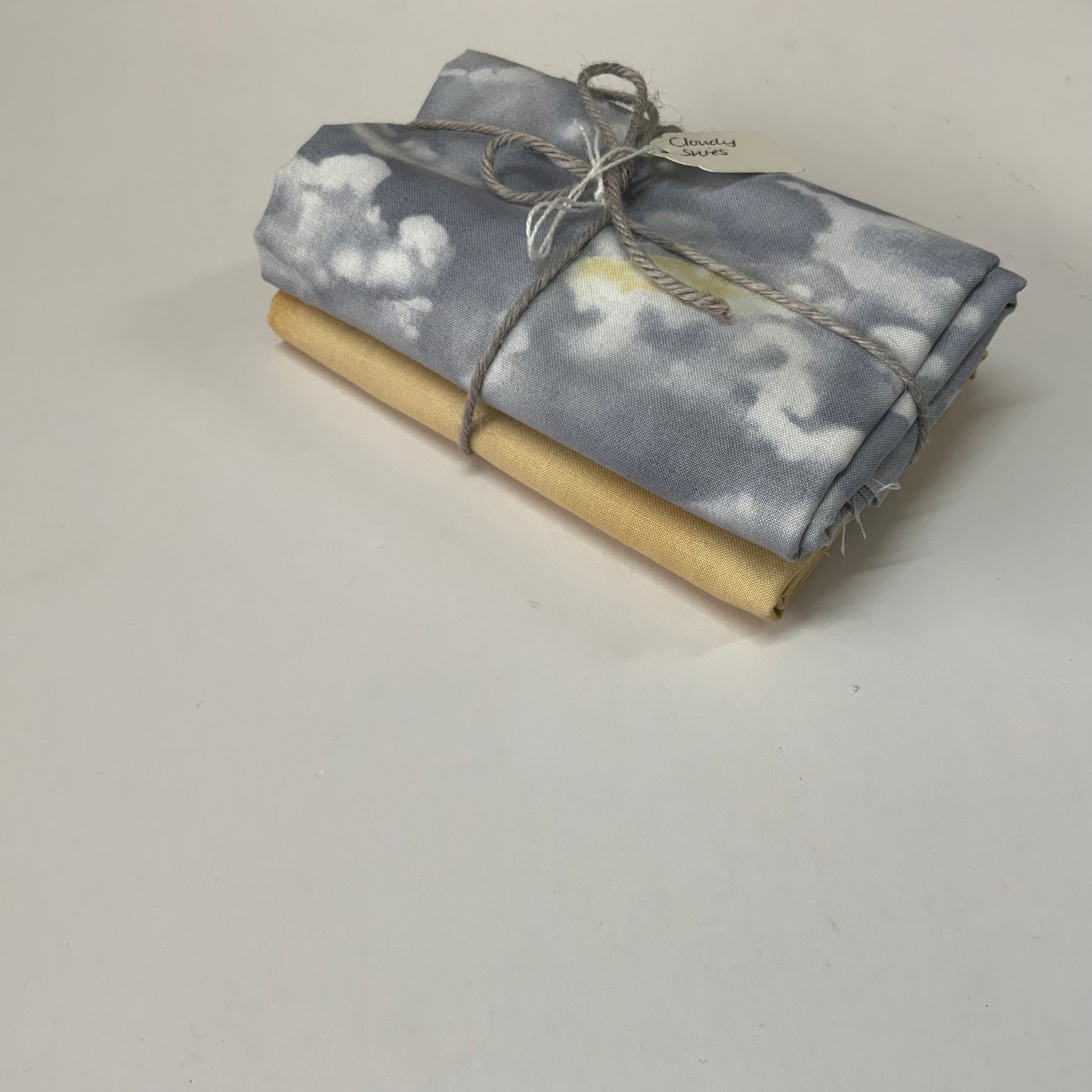 Bundle contains half metre of cloudy skies and half metre of a coordinating fabric quilters shadow sand