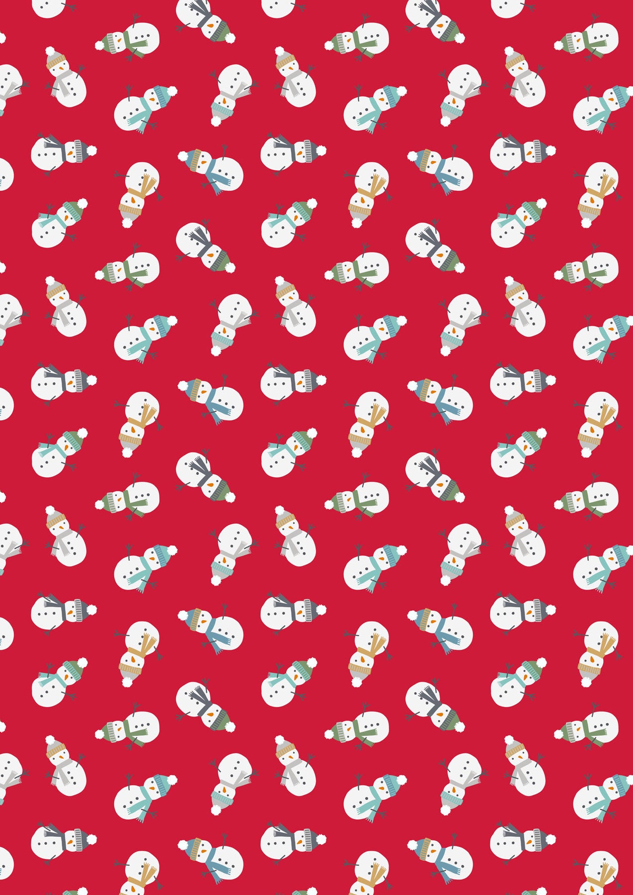 Snow Day Scattered Snowmen on Red Brushed Cotton