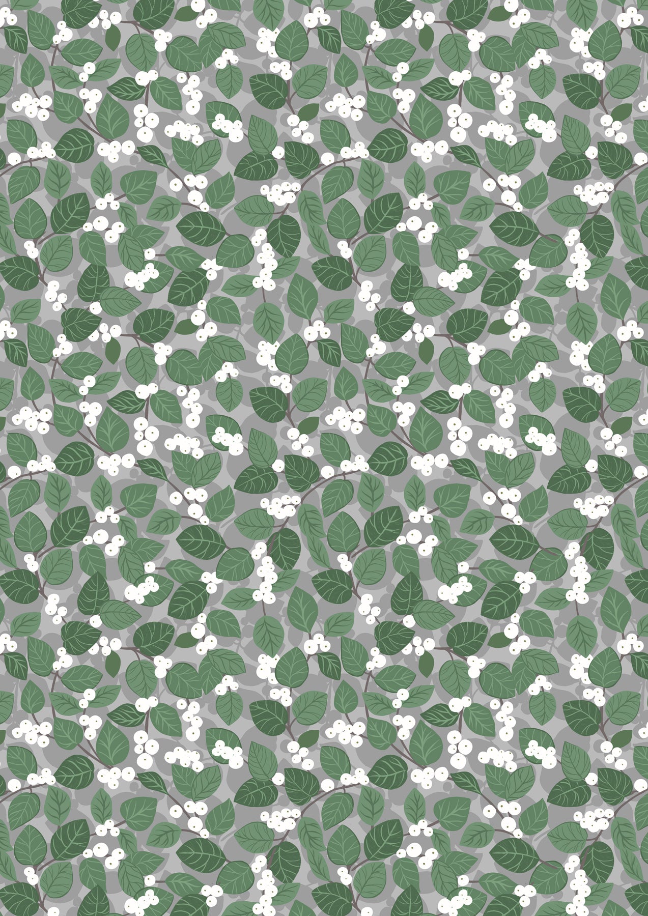 Winter Botanical Snowberry on Dark Silver with Pearl