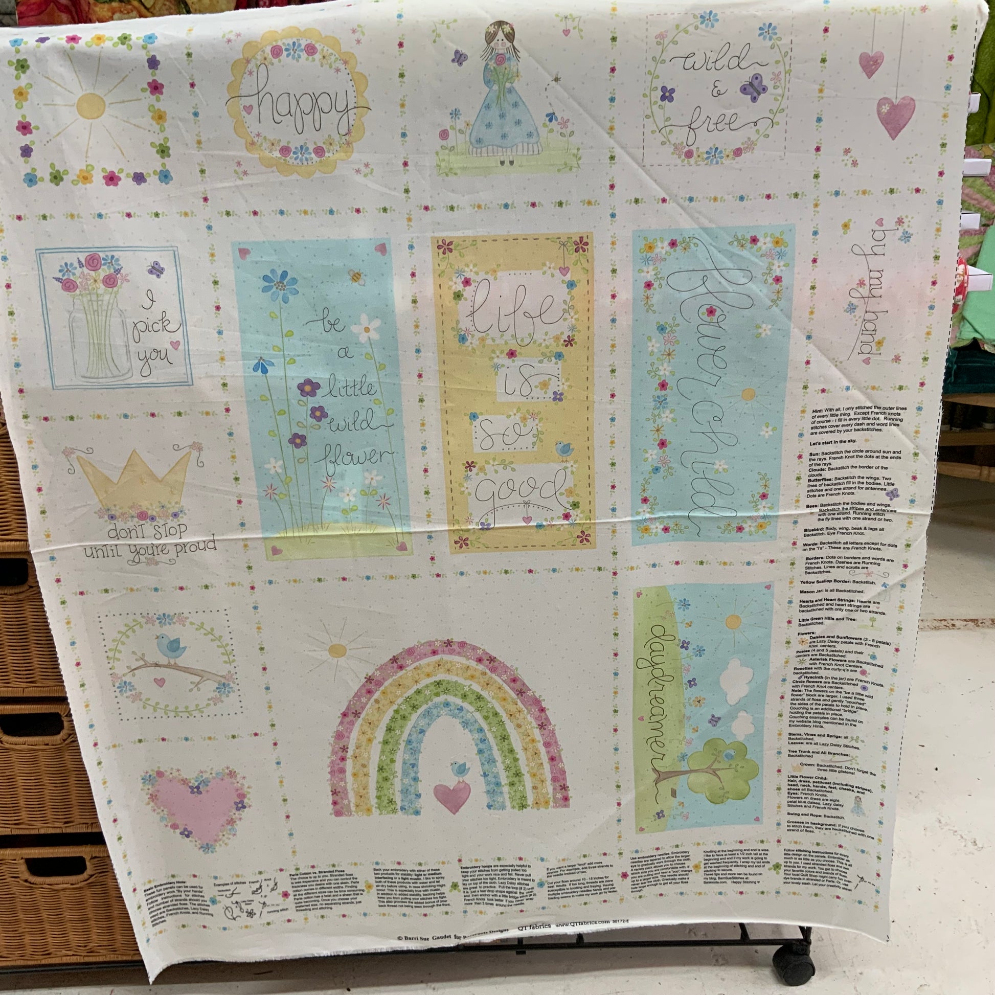 Beautiful panel depicting flowers, hearts, birds, fairy, bees etc accompanied by inspiring words.