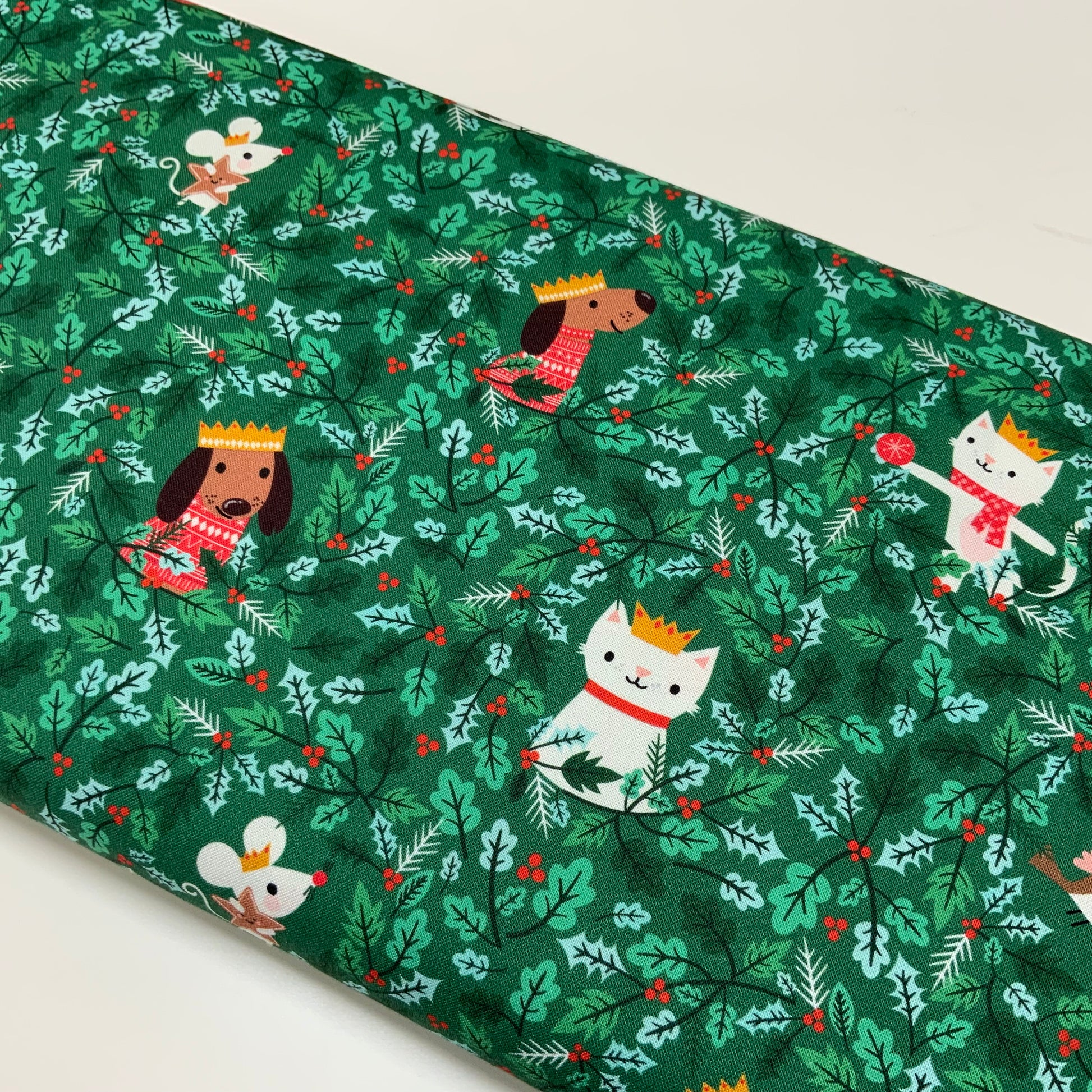 White Mouse & Festive Animals amongst the Holly - Cosy Christmas