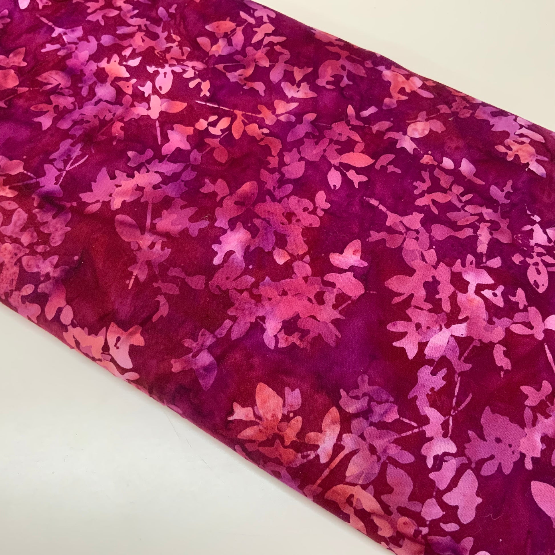 Pale Pink Leaves & Petals on Dark Pink - Hoffman Batik