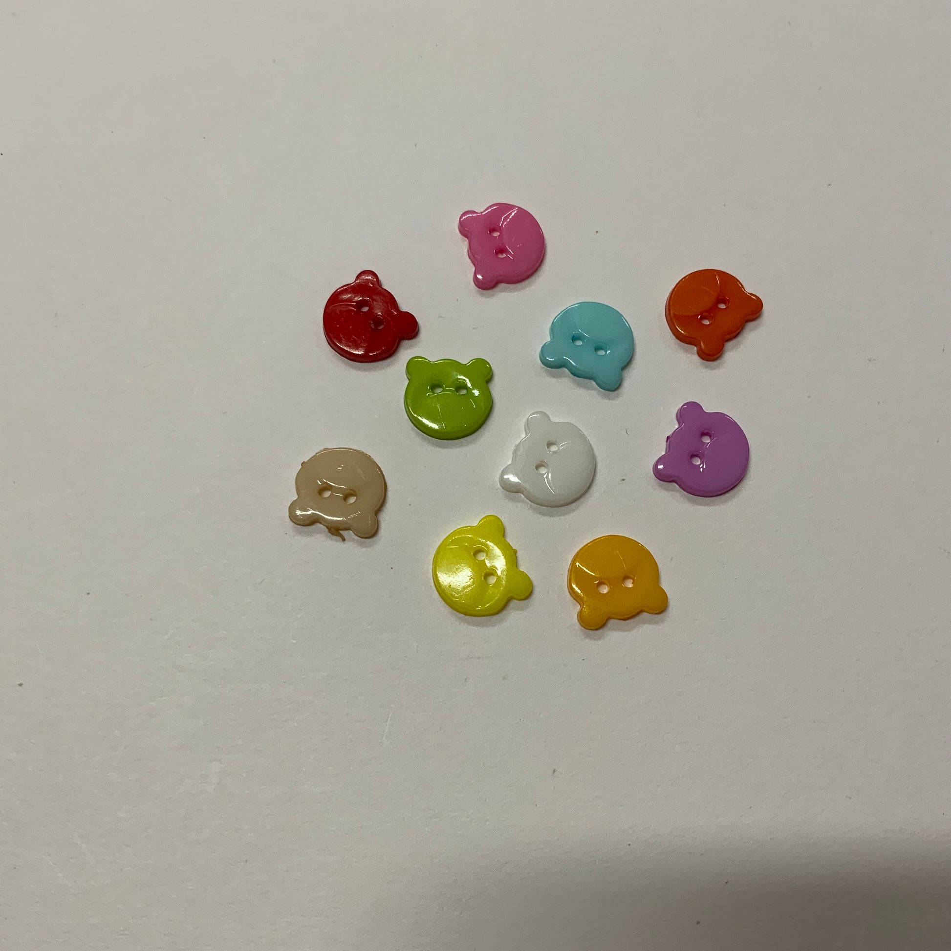 Pink, turquoise blue, lime green, buttercup yellow, cream, red, orange, white and mauve.
