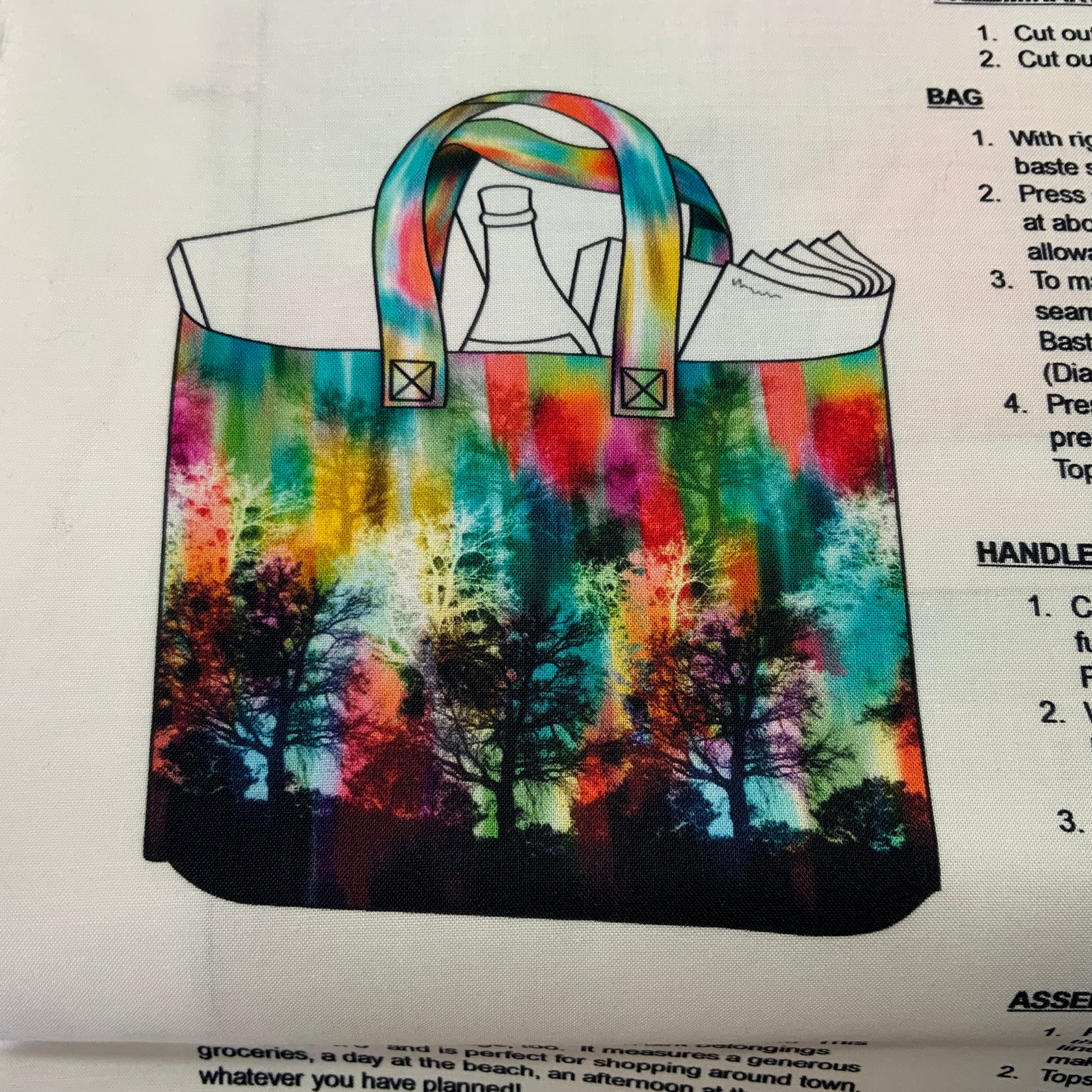 Quilting Treasures - this panel has full instructions to guide you through making this bag. Finished size is approx 16” x 16” x 5”.
